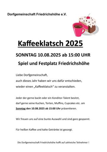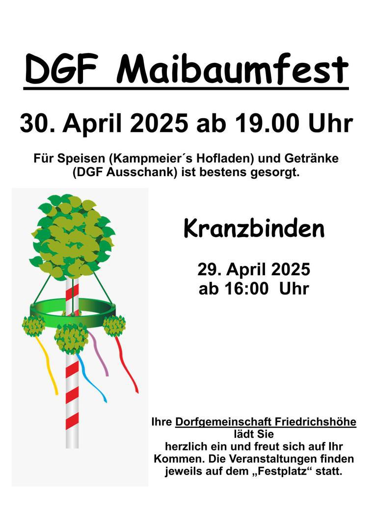 Erntefest in Friedrichshöhe vom 31.08. bis 02.09.2018. Drei Tage Programm mit Binden des Erntekranzes am Freitag, Ernteball am Samstag, Gottesdienst, Umzug zum Erntepaar Simone und Thomas Sprick und Tombola am Sonntag.