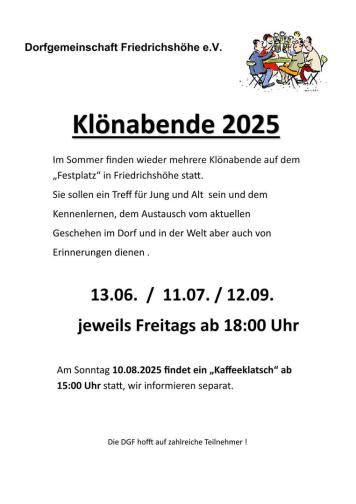 Wir treffen uns regelmäßig zu unterschiedlichen Veranstaltungen. Hier tauschen wir uns aus, sitzen gesellig zusammen und treffen für unseren Verein wichtige Entscheidungen. Wir freuen uns, wenn Sie einmal dazu stoßen und an einer regen Diskussion unter Freunden teilnehmen. Besonders willkommen sind auch die Kinder und Jugendlichen unseres Dorfes.